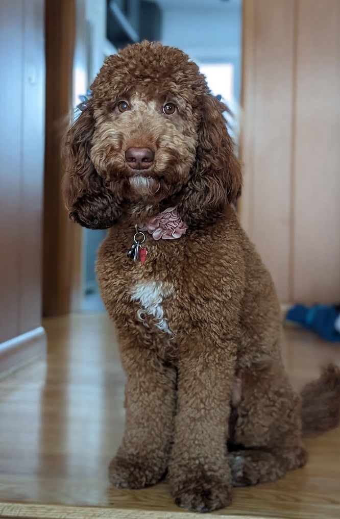 Tully was born at High Time Australian Labradoodles in Waterloo, ON on January 2nd, 2022. She has since been a wonderful addition to the family here at Windsor Doodle where she stays in a Guardian home in Windsor with lots of fur brothers and sisters. She makes her human momma so happy!